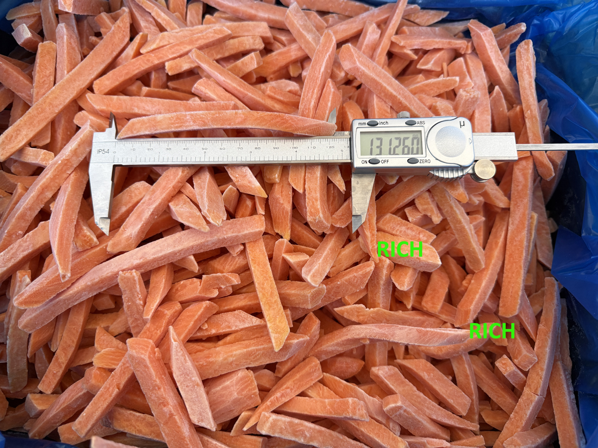 Frozen Sweet Potato Strips are made from fresh, premium-grade sweet potatoes, carefully selected for color, sweetness, and texture. The raw materials are washed, peeled, cut into uniform strips, blanched, and then quick-frozen (IQF) to preserve their natural flavor, color, and nutrients.