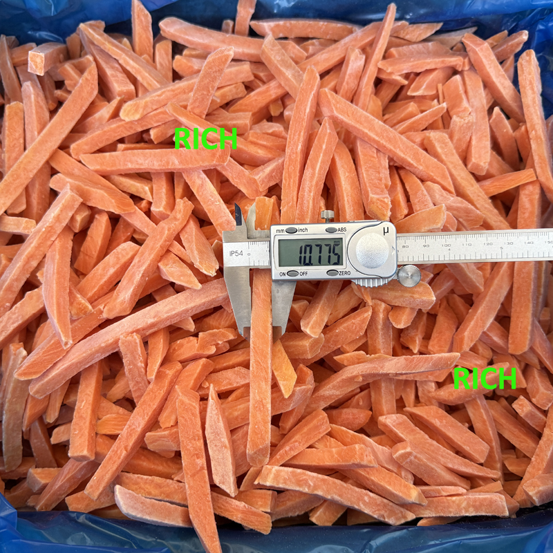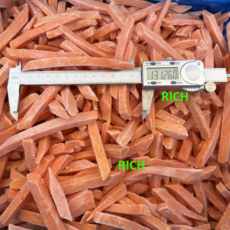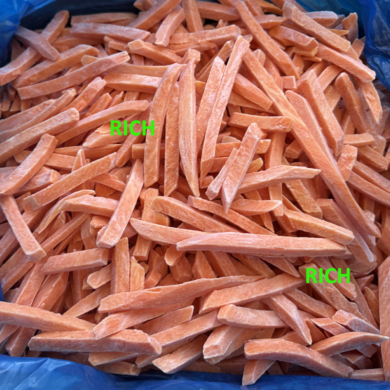Frozen Sweet Potato Strips are made from fresh, premium-grade sweet potatoes, carefully selected for color, sweetness, and texture. The raw materials are washed, peeled, cut into uniform strips, blanched, and then quick-frozen (IQF) to preserve their natural flavor, color, and nutrients.