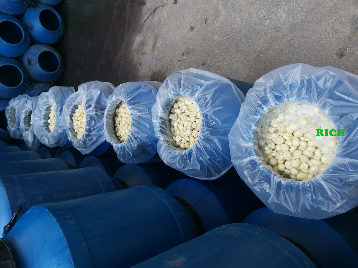 Frozen Foods: The white mushroom in SO2 in drums are suitable for further processing into IQF (Individually Quick Frozen) mushrooms.