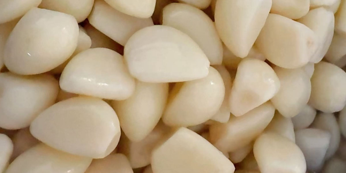 Garlic in Brine in Drums is fresh garlic that has been peeled, cleaned, and immersed in a salt-water solution (brine) containing garlic, water, salt, citric acid, and acetic acid. This preservation method inhibits bacterial growth, keeps the garlic fresh for months, and maintains its natural flavor and texture.