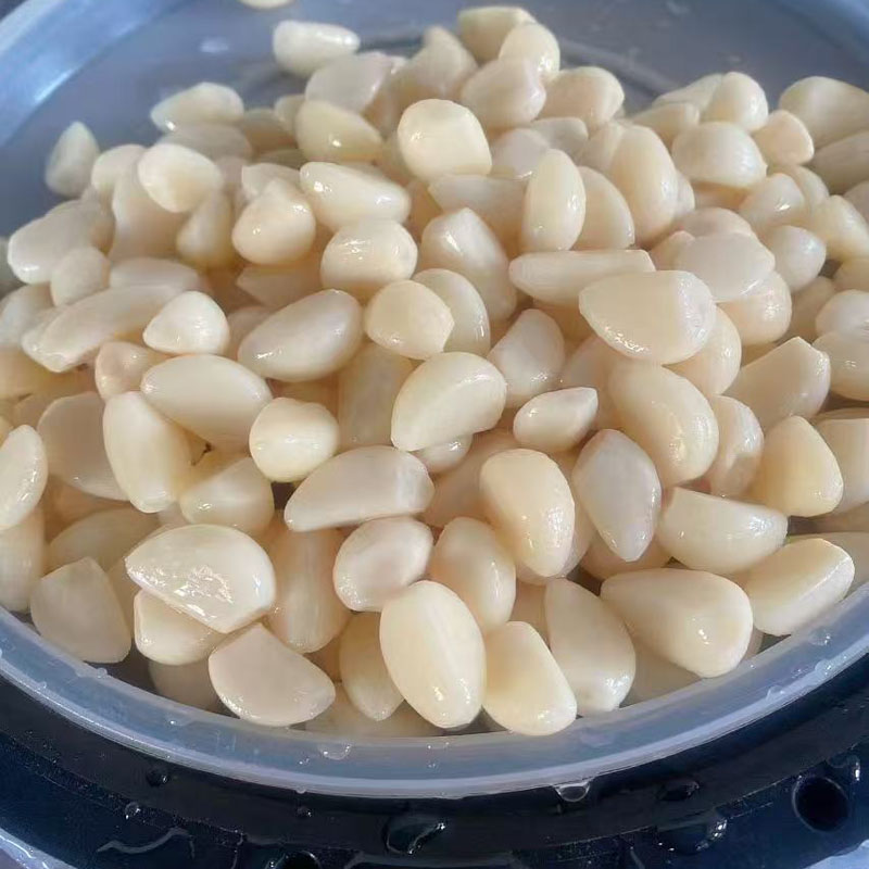 Garlic in Brine in Drums is fresh garlic that has been peeled, cleaned, and immersed in a salt-water solution (brine) containing garlic, water, salt, citric acid, and acetic acid. This preservation method inhibits bacterial growth, keeps the garlic fresh for months, and maintains its natural flavor and texture.