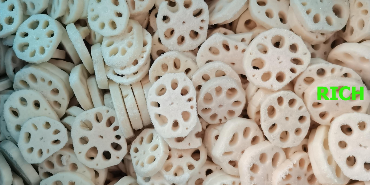 A1: They are fresh lotus roots that have been peeled, sliced into uniform pieces, and quickly frozen using IQF technology to preserve their natural taste, crisp texture, and nutrition.