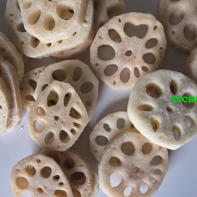 A1: They are fresh lotus roots that have been peeled, sliced into uniform pieces, and quickly frozen using IQF technology to preserve their natural taste, crisp texture, and nutrition.