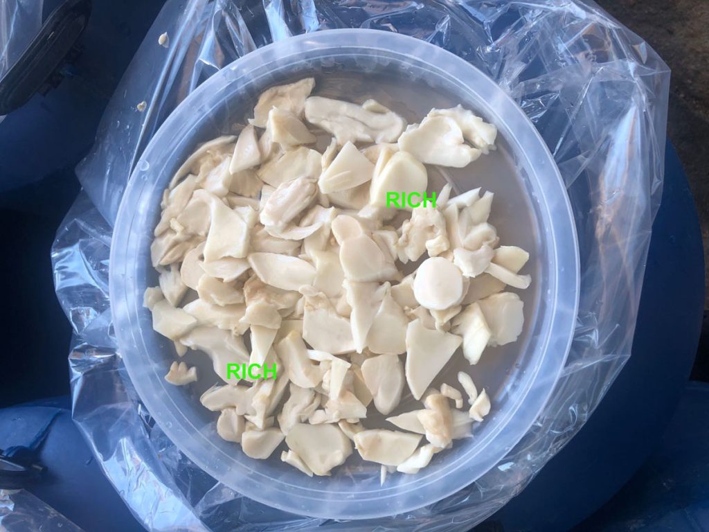 They are then immersed in a food-grade SO₂ preservation liquid and packed into large HDPE drums for safe storage and export.