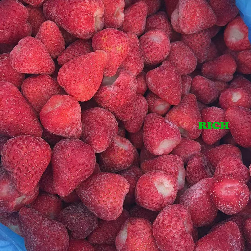 New crop frozen strawberry are harvested at peak ripeness from the latest harvest, then rapidly frozen using IQF (Individually Quick Frozen) or similar freezing technology to preserve their fresh-picked flavor, texture, and nutritional value. This process ensures that the strawberries retain their color, aroma, juiciness, and vitamin content, and allows them to be available year-round, even outside the growing season.