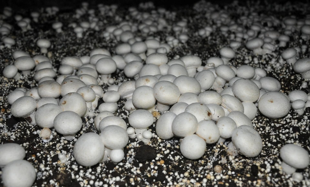 Cultivated champignon mushrooms (Agaricus bisporus) from standardized farms
