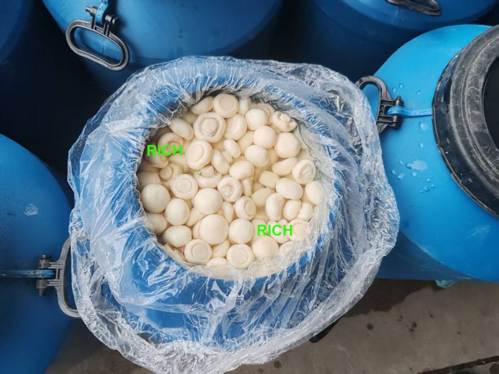 Preserved Mushrooms in SO2 in drums are fresh mushrooms that have been cleaned, trimmed, blanched, and preserved in a controlled solution of sulfur dioxide (SO₂) to maintain their natural color, texture, and sound quality during long-term storage and worldwide transportation.