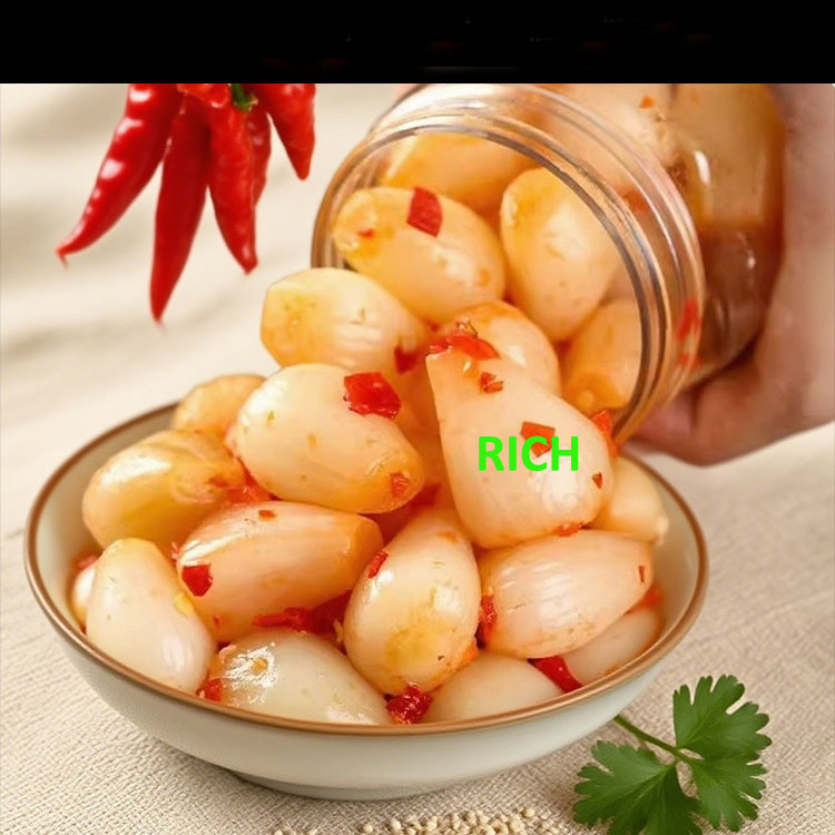 Our Factory Salted Peeled Garlic Cloves in Brine are carefully processed from freshly harvested, premium-grade white garlic. Each clove is hand-peeled, sorted, and immersed in a natural salt brine to preserve its original aroma, crisp texture, and pungent flavor without additives or preservatives.